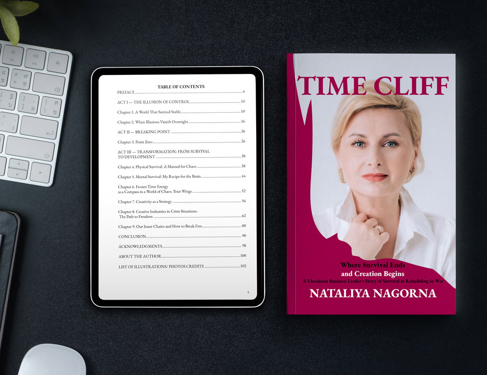 I sincerely believe that this book is for everyone. Crisis management for business and the individual. 100% practice. Written in the simplest possible language, with examples. So that everyone can understand. Hear it, remember it, and apply it. Time Cliff by Nataliya Nagorna is a method for pulling oneself out of the sticky swamp of a heavy reality and finding a path through the dark forest toward a bright meadow and development. This book is multifaceted and universal. Understandable for both a teenager and a professor. Many will likely recognize themselves in it, no matter which continent you live on. It is a book to be read in a single breath. After all, that is exactly how these lines were written.